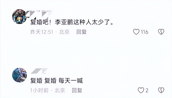 评论区里各种猜测满天飞,有人说当初两人离婚就是为了躲债务,现在李亚鹏把债还得差不多了,自然要复婚。